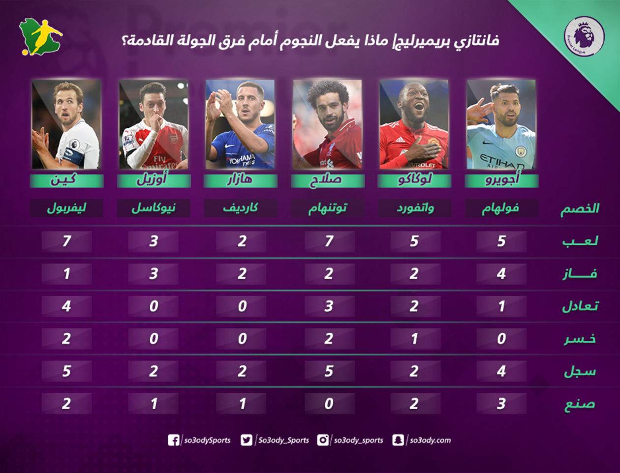 والقادم بقوة سيكون المهاجم الأرجنتيني المتألق سيرجيو آجويور، والذي سيستضيف فولهام على ملعب الاتحاد في الجولة القادمة، ومع إحراز اجويرو لأربعة أهداف في خمسة مباريات وصناعة ثلاثة آخرين أمام فولهام، وخوض المباراة على ملعبه، سيكون مرشح بقوة لإحراز الأهداف.