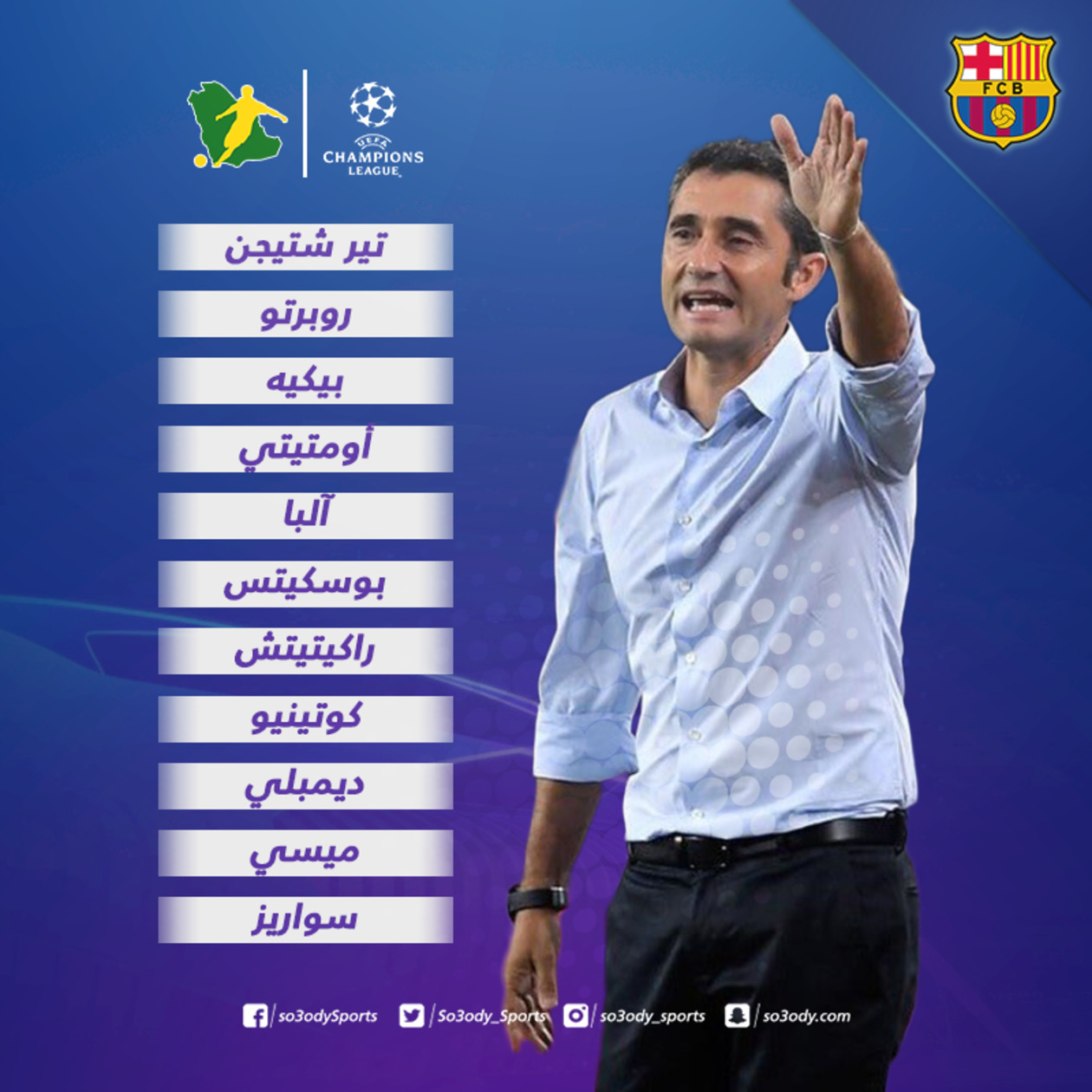الهجوم: ميسي، سواريز، ديمبلي.