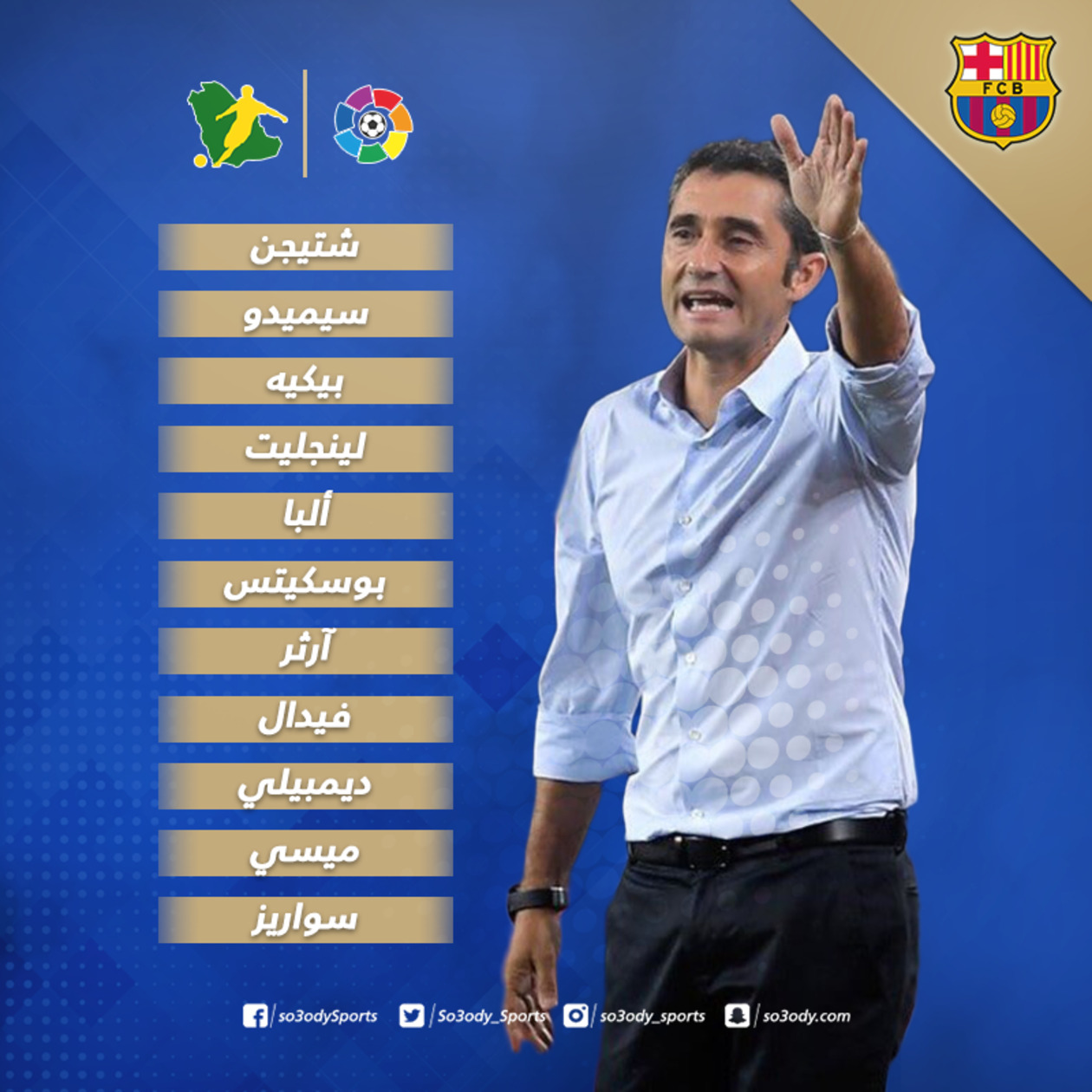 أعلن الإسباني إيرنستو فالفيردي مدرب فريق برشلونة عن تشكيل فريقه الذي سيخوض مباراة الجولة الخامسة من الدوري الإسباني أمام جيرونا على ملعب كامب نو.