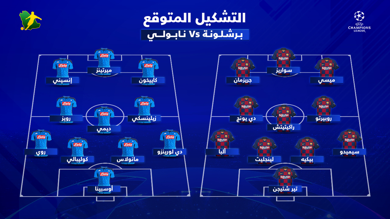 يستعرض لكم سعودي سبورت، التشكيل المتوقع للقاء برشلونة ونابولي..