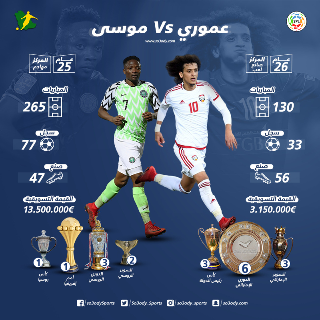 ويستعرض "سعودي.كوم" أرقام عموري وأحمد موسى خلال مسيرتهم الكروية..
