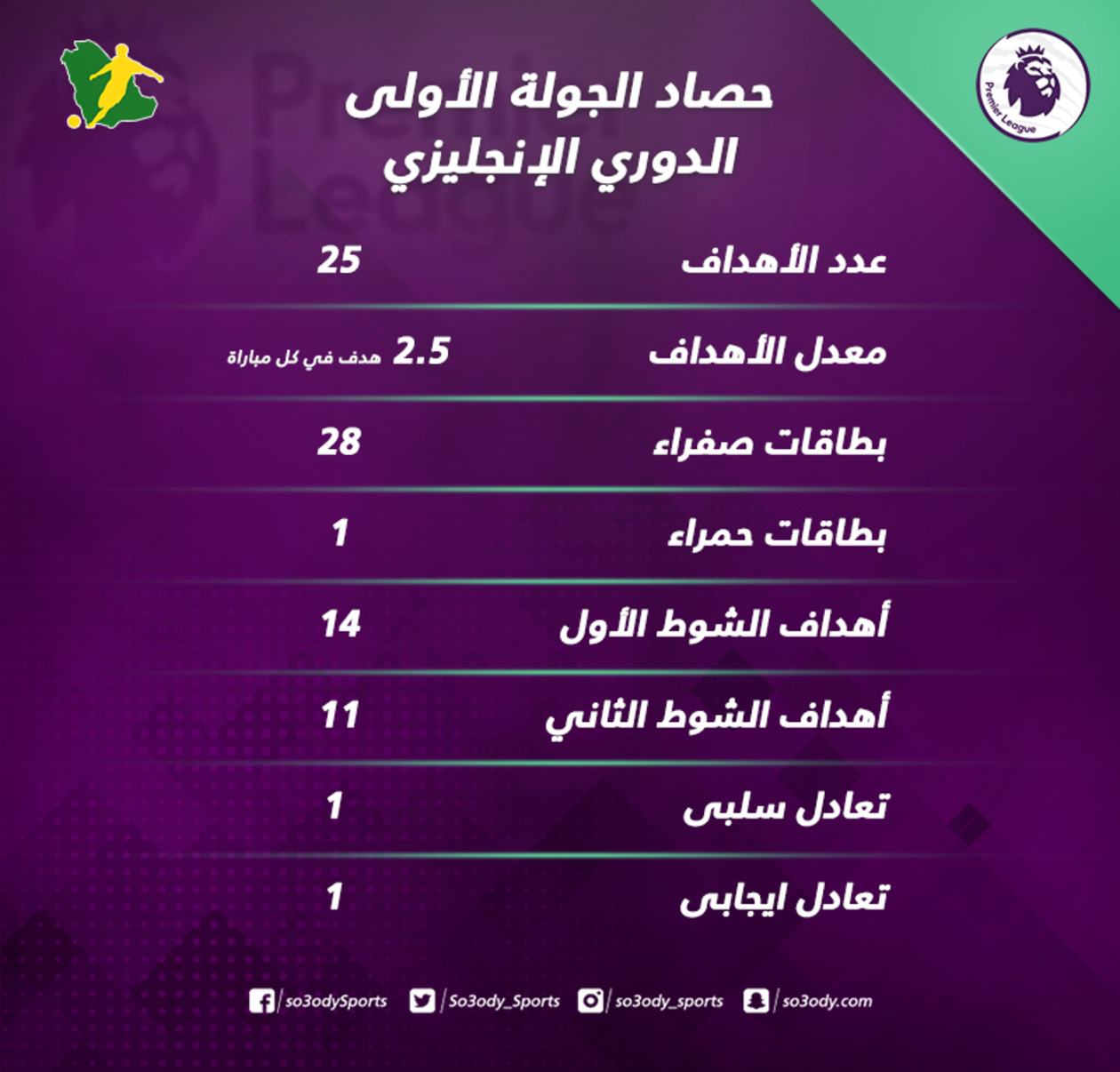 شهدت الجولة الأولى من الدوري الإنجليزي العديد من اللقطات والأرقام التي تستحق التوقف عندها لاستعراضها بعد نهاية الجولة، وهو ما سنتحدث عنه في التقرير التالي..