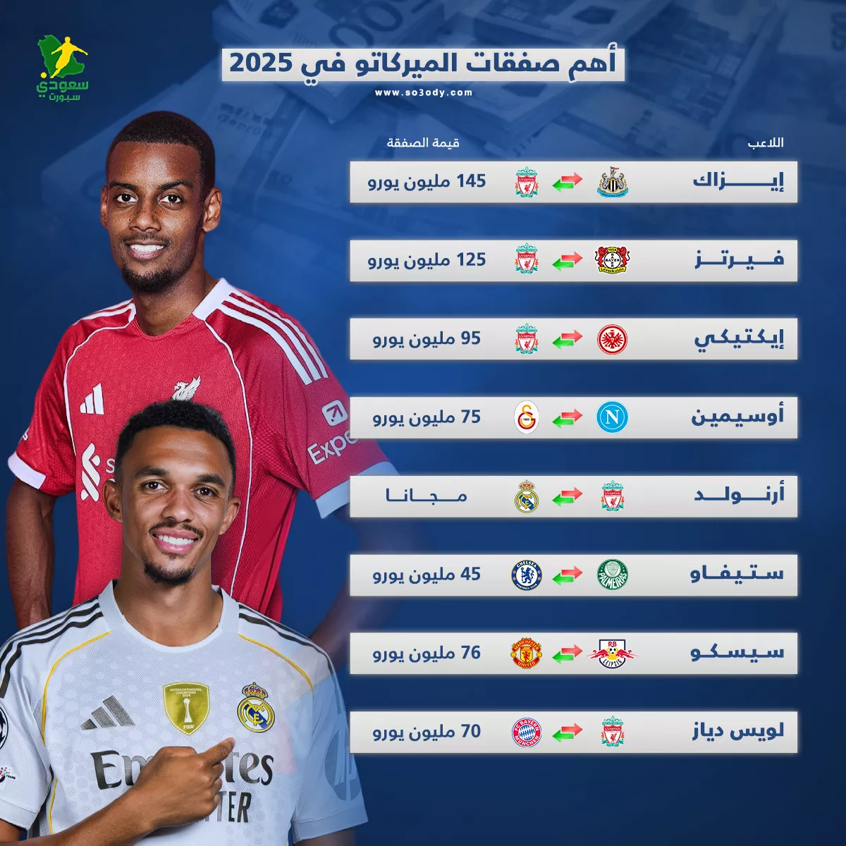 ثورة في الميركاتو.. ليفربول وريال مدريد يتصدران المشهد لعام 2025