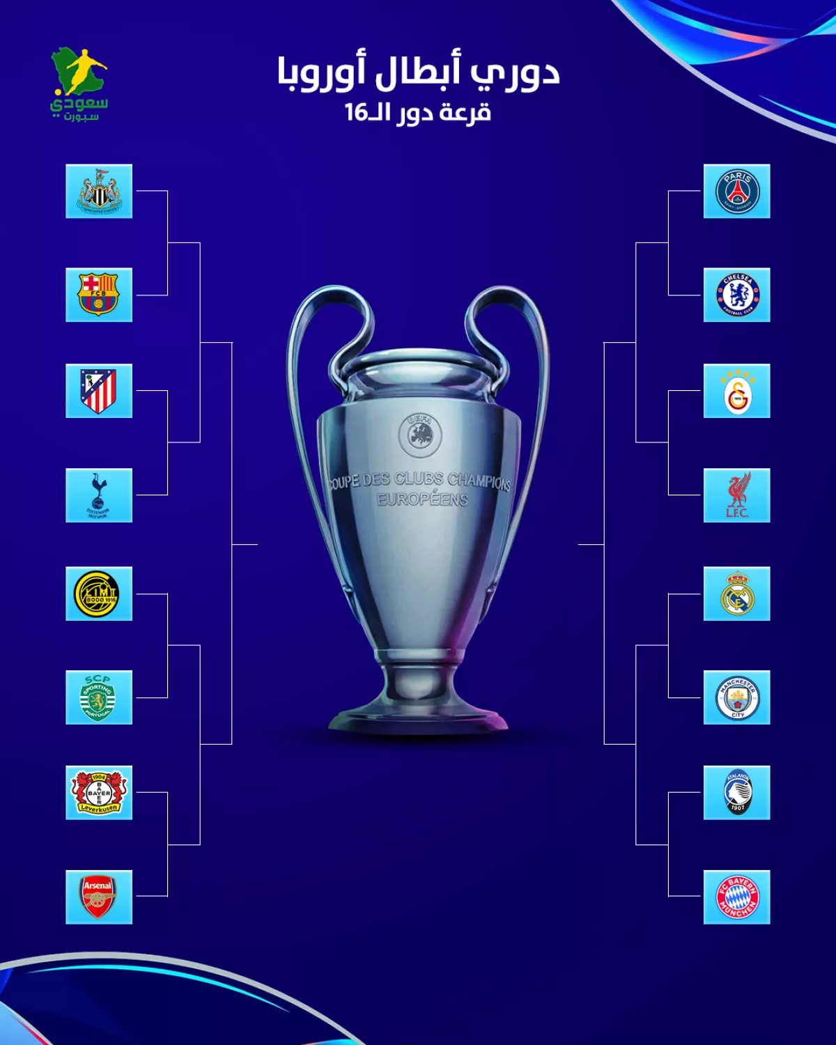 أسفرت قرعة دور الـ16 من دوري أبطال أوروبا عن مواجهات نارية مرتقبة، بعدما أسدل الستار على مراسم السحب التي حبست أنفاس عشاق الكرة الأوروبية.