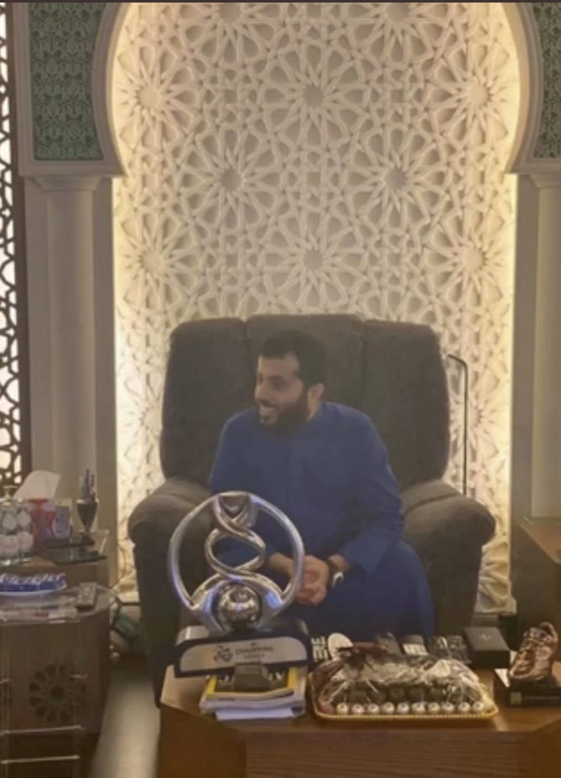 ونشر جوميز صورة لتركي آل الشيخ، بجوار كأس دوري أبطال آسيا، عبر حسابه الشخصي بموقع التدوينات القصيرة "تويتر"، برسالة جاءت كالآتي..