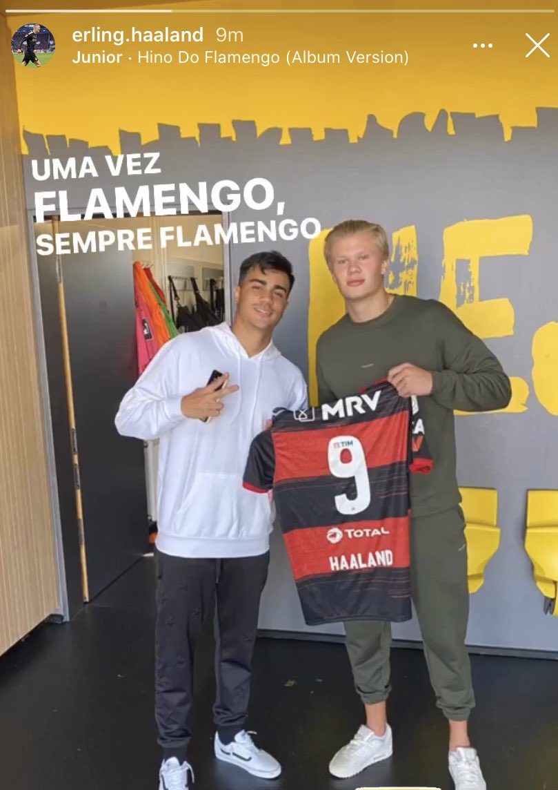 وظهر رينير مع هدف الملكي هالاند في صورة صباح اليوم، بعدما قام اللاعب البرازيلي بإهدائه قميصا لفريقه السابق فلامنجو.