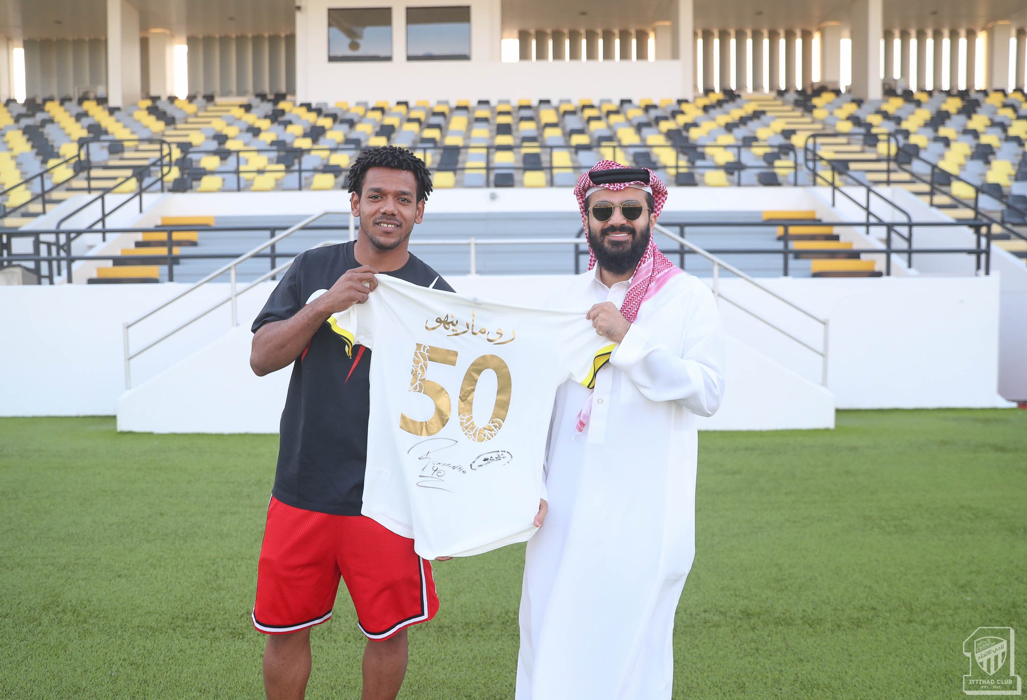 وقام آنمار الحائلي، رئيس مجلس إدارة نادي الاتحاد، بتسليم البرازيلي رومارينهو قميص الفريق يحمل الرقم 50 بمناسبة تسجيل 50 هدف في مسيرته مع العميد.