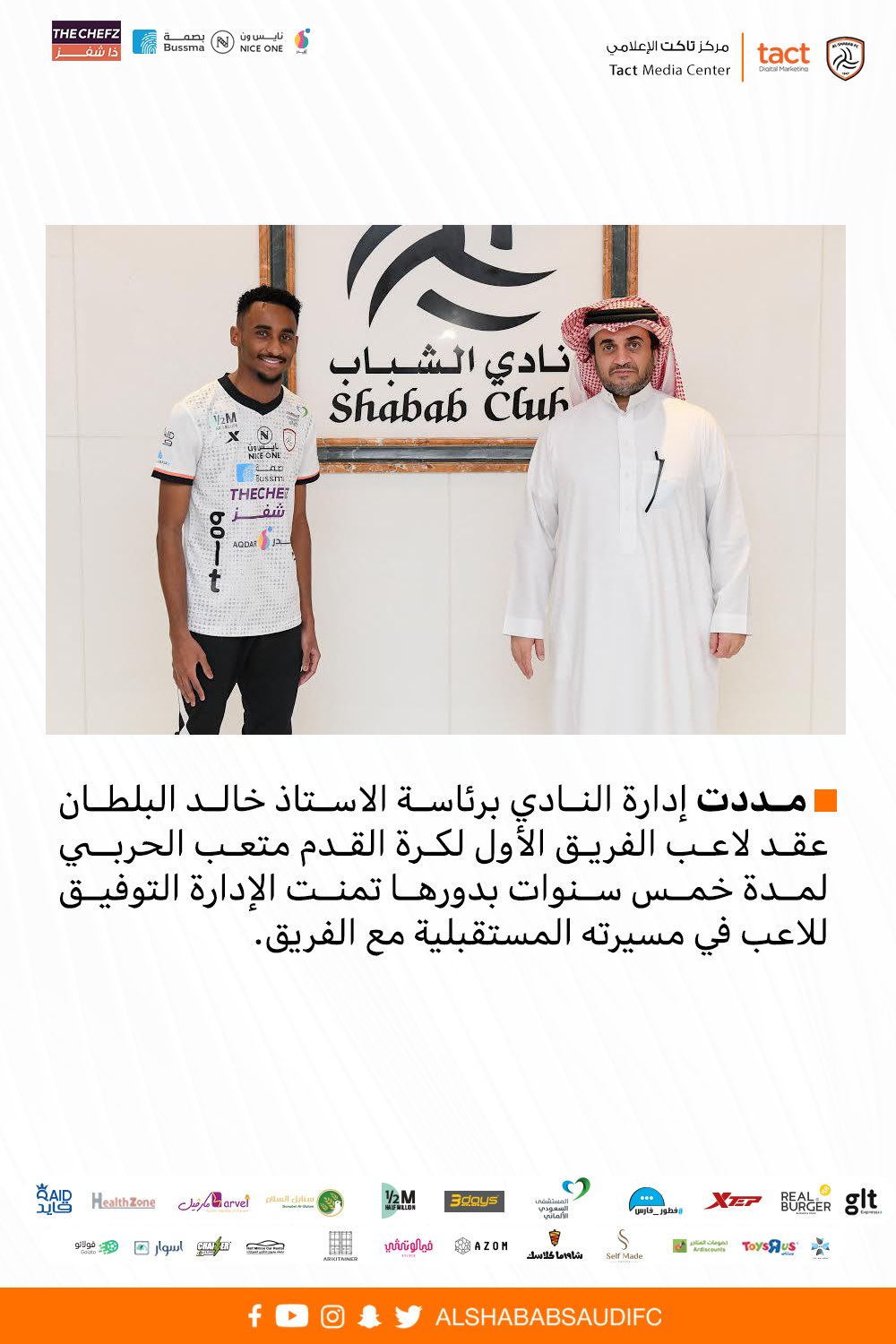 ومددت إدارة نادي الشباب، برئاسة خالد البلطان، عقد لاعب الفريق الأول لكرة القدم، متعب الحربي، لمدة خمس سنوات، ليستمر مع الفريق حتي صيف 2026.