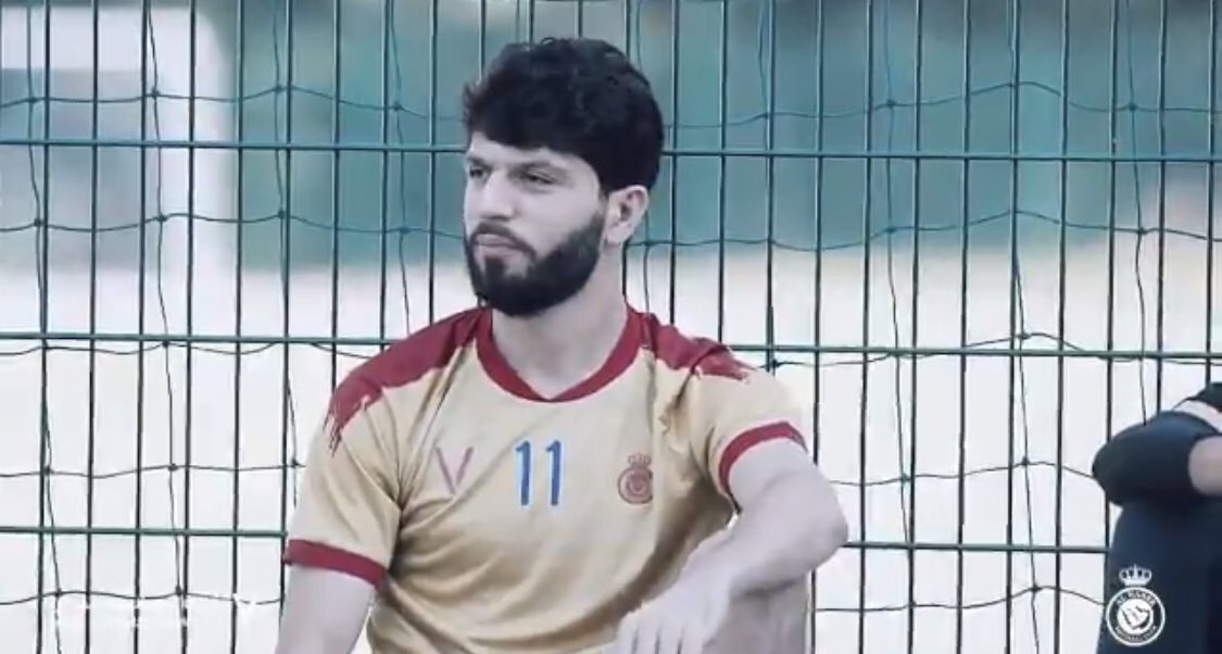 ظهر الدولي الأوزبكي جلال الدين ماشاريبوف، لاعب الفريق الأول لكرة القدم بنادي النصر، بقميص الفريق خلال المران الأول للعالمي في بغاريا.