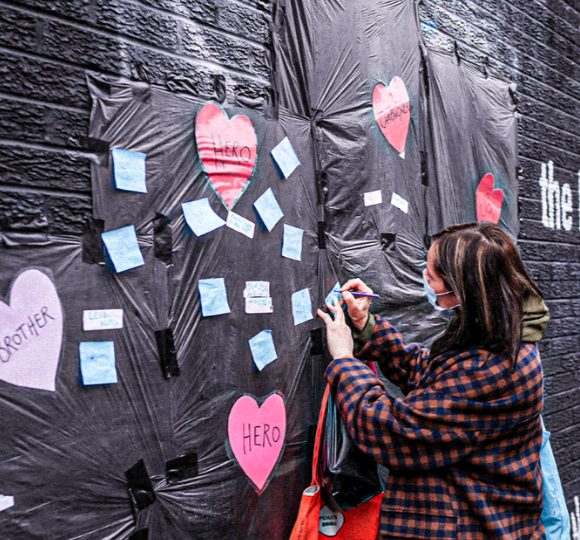 الحب واجه العنصرية على حائط راشفورد، بل انتصر عليه، وفق ما نستعرضه لكم في السطور التالية، إذ حاول البعض، تجميل الجدارية أو "الجرافيتي" بعد أن تشوه على يد أعداء البشرية.