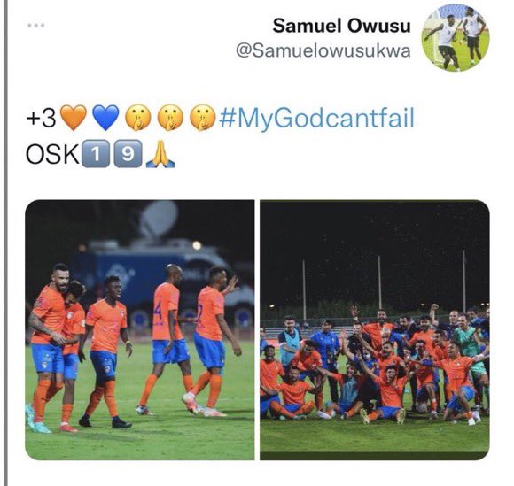 ونشر أوسو، تغريدة عبر حسابه الرسمي على موقع تويتر، صورة من احتفال نجوم الفيحاء، بالفوز على الأهلي، مع علامات "السكوت"، في إشارة إلى الجمهور الأهلاوي.